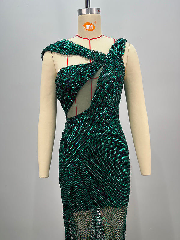 Steal the Spotlight in the Hot Fashionista Lux Cutout High Slit Mesh Dress