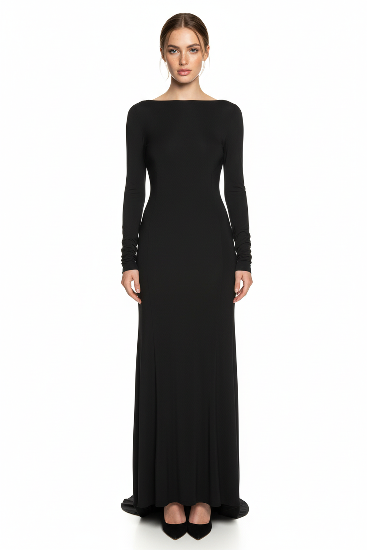 Make an unforgettable entrance with the Sam Open-Back Evening Gown, a sleek and sophisticated design crafted for your most elegant moments. This gown features a timeless silhouette enhanced by a dramatic open-back detail that adds allure from every angle. Flowing gracefully to the floor, the smooth fabric drapes effortlessly, creating a refined, statuesque look. Perfect for galas, formal celebrations, or any evening event where you want to radiate confident elegance.
