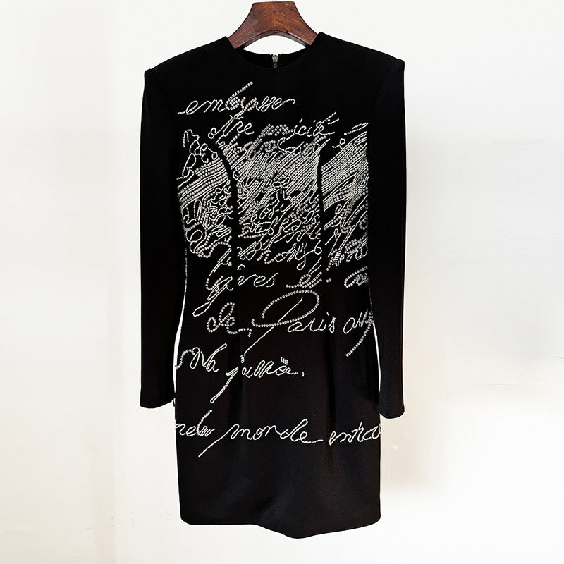 Step into the spotlight with the Lennox Rhinestone-Embellished Mini Dress, your go-to for unapologetic glamour. Covered in shimmering rhinestones that catch the light from every angle, this curve-hugging mini dress is made to turn heads. The sleek silhouette, with a flirty length and radiant sparkle, makes it the perfect piece for nights when you want to steal the scene.