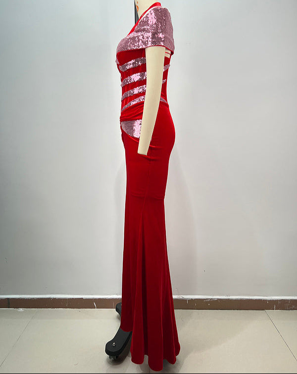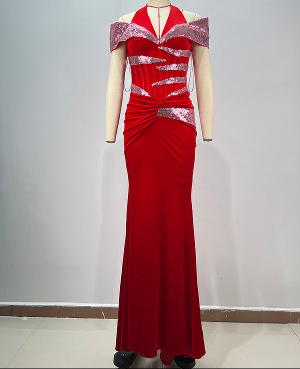 Midnight Allure – Hot Fashionista Indigo Halter Sequin Corset Maxi Dress