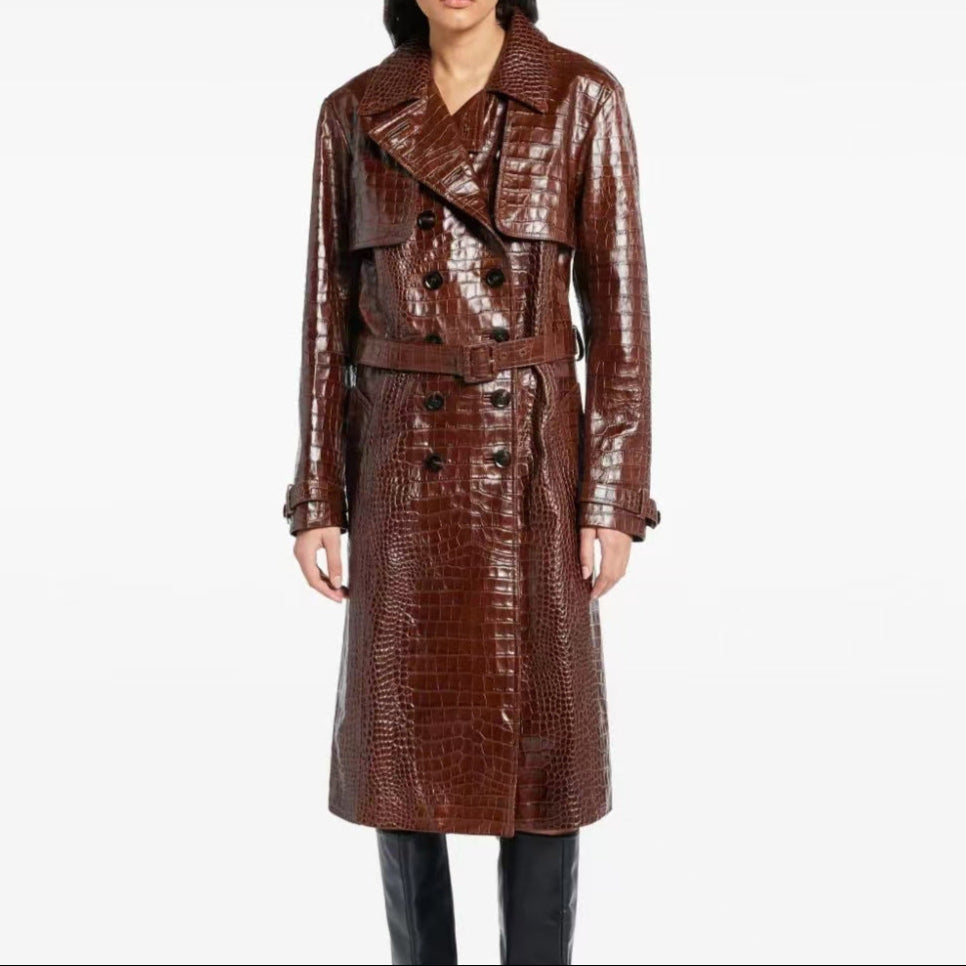Timeless Edge – Hot Fashionista Dovie Crocodile-Effect Leather Trench Coat