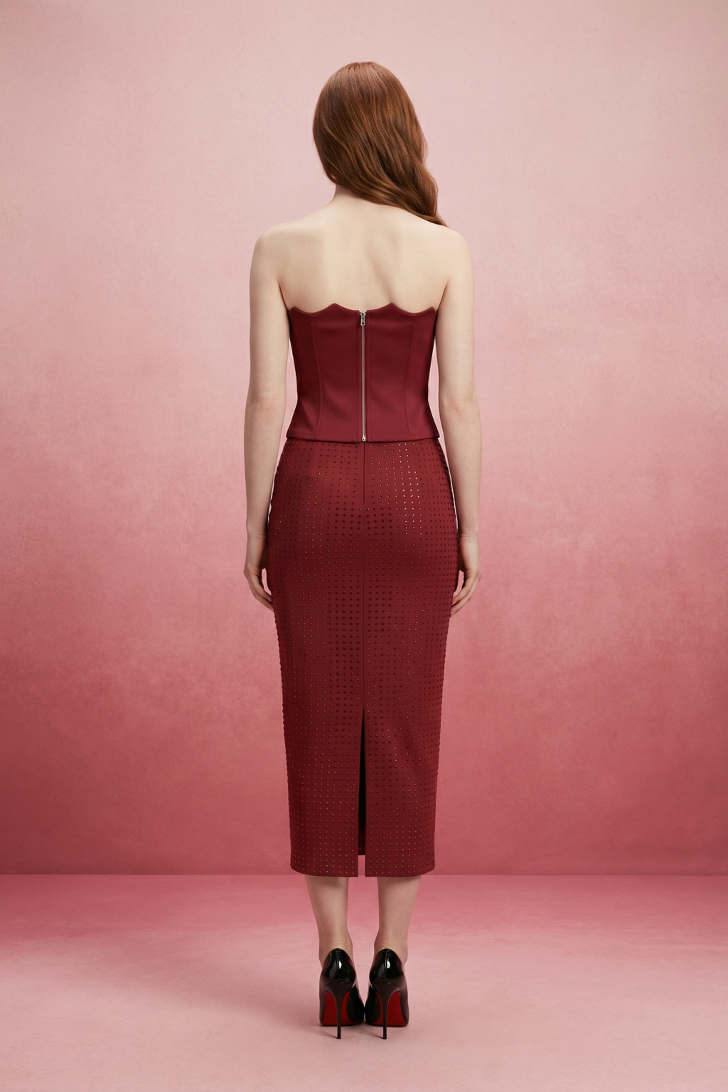 • Corset-style top with intricate sequin embellishments