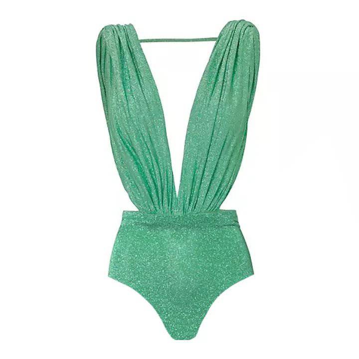- Sophisticated Appeal: The plunging neckline adds a touch of sophistication and modern elegance to the swimsuit, making it perfect for stylish outings.
