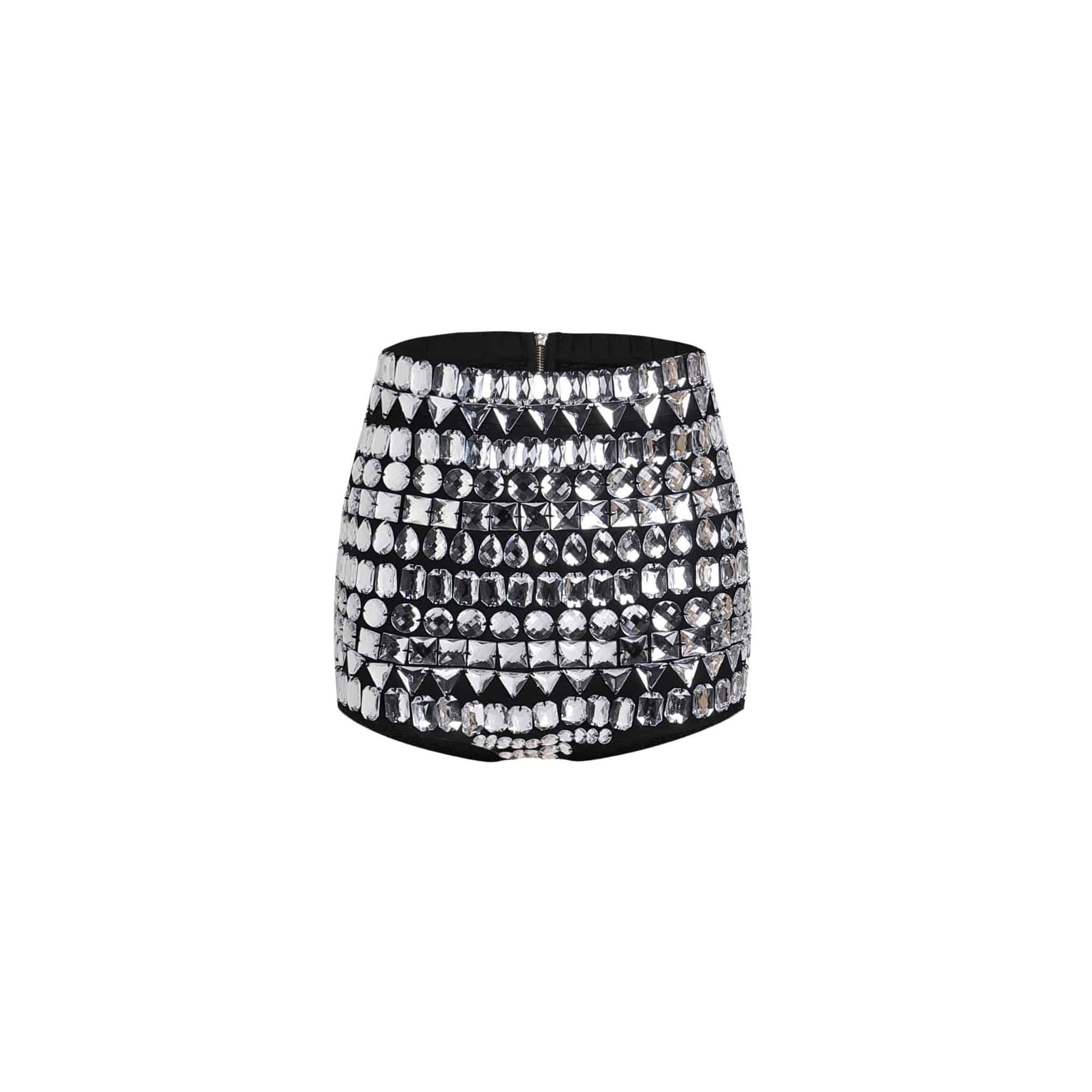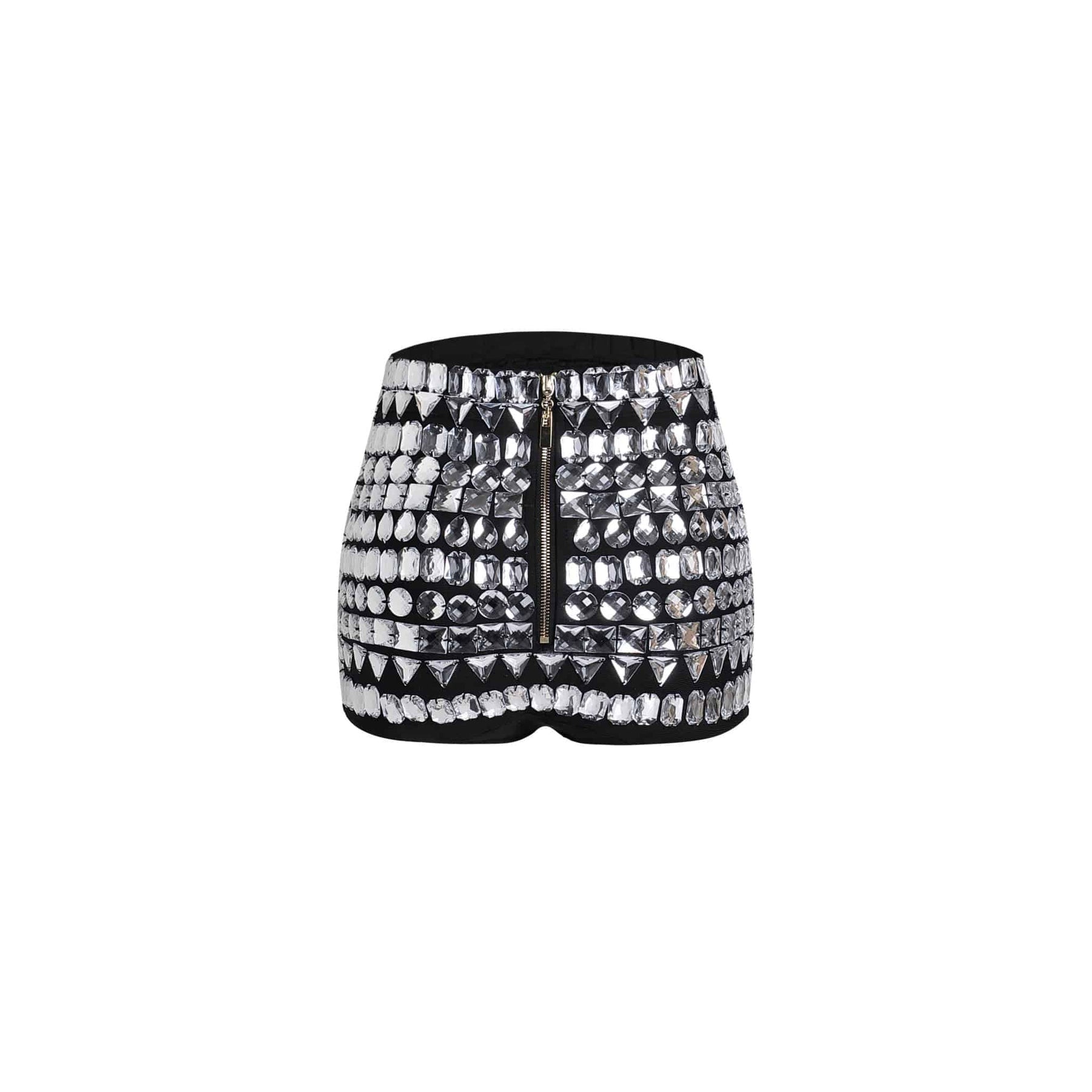 Rhinestone Embellishments: The shorts are adorned with intricate rhinestone embellishments that exude luxury and elegance. These sparkling details catch the light beautifully, adding a touch of glamour to your ensemble.