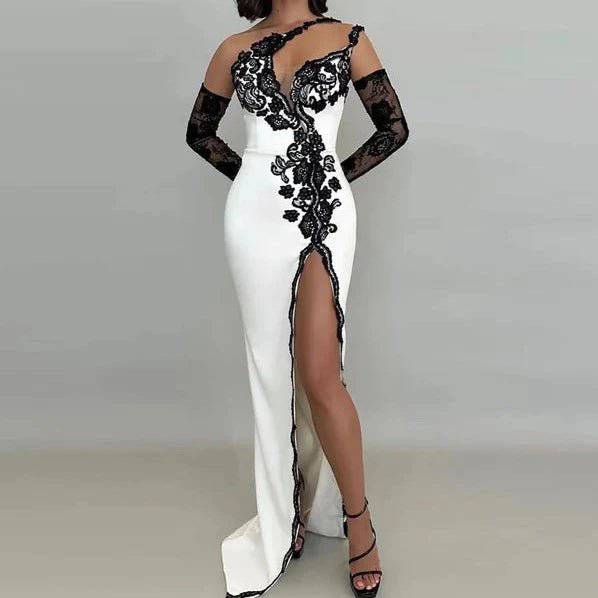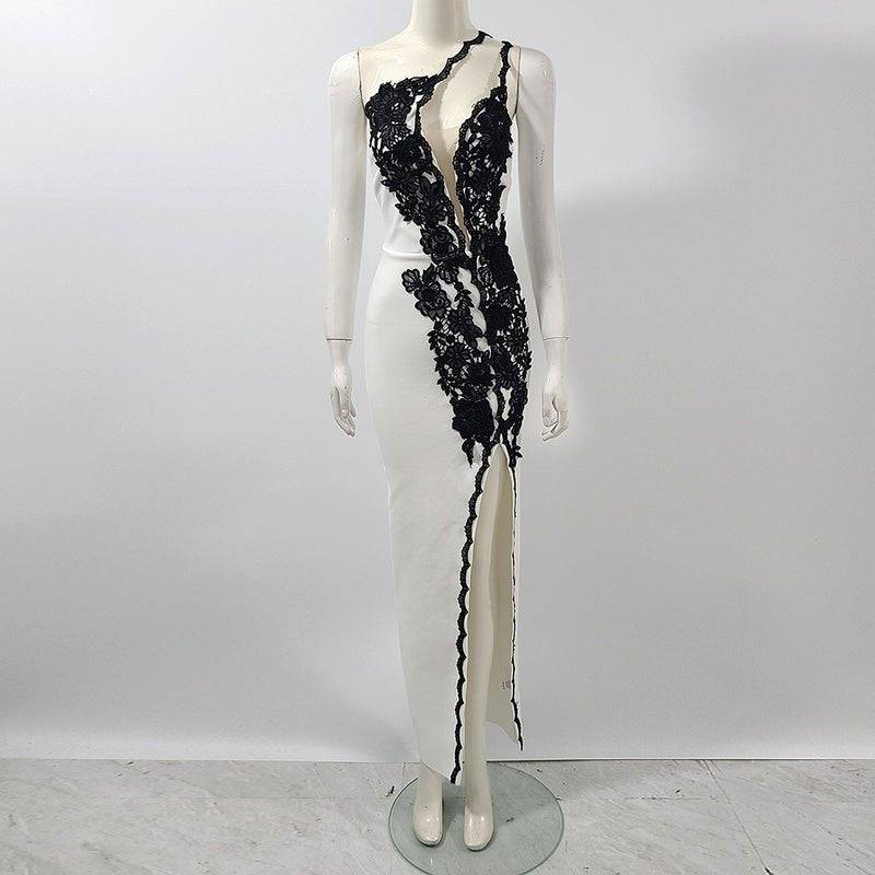 Margie Asymmetric Off Shoulder Lace Maxi Dress - Hot fashionista