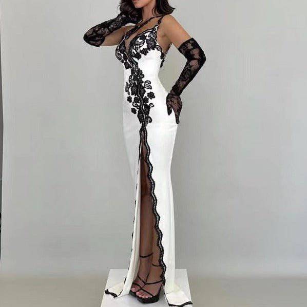 • Delicate Detailing: The lace features delicate floral patterns and intricate designs, adding to the dress's luxurious and sophisticated feel.