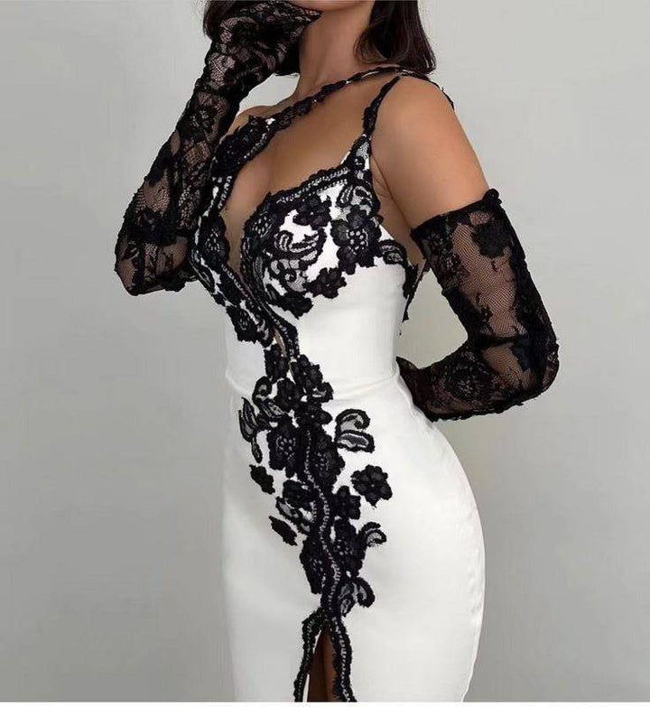 • Timeless Beauty: The dress is crafted from exquisite lace fabric, which adds a timeless and romantic touch. The intricate lace detailing enhances the overall aesthetic, creating a visually captivating look.