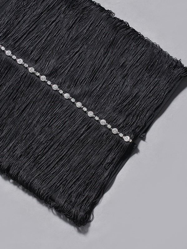 Turn heads with the Phoebe Rhinestone-Embellished Halter Tassel Midi Dress, a breathtaking blend of sparkle, movement, and modern elegance. This show-stopping midi dress features a sleek halter neckline that accentuates the shoulders, while dazzling rhinestones cascade across the bodice for a radiant, high-impact shine. The eye-catching tassel detailing adds fluid motion with every step, creating a look that’s both glamorous and effortlessly chic. Designed to flatter, the fitted silhouette skims your curves and delivers a sophisticated finish perfect for nights out, cocktail parties, or any occasion where you want to steal the spotlight.