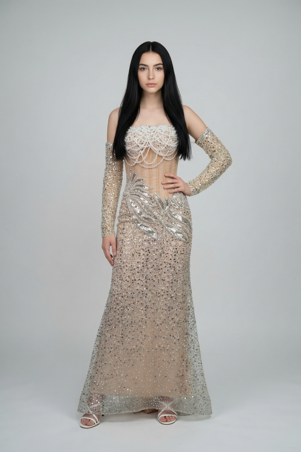 Make a show-stopping entrance in the Ruby Beaded Crystals Mermaid Dress, a luxurious gown designed to turn heads at every event. This stunning mermaid-style dress features intricate beading and sparkling crystal embellishments that catch the light beautifully, creating a dazzling, red-carpet-ready effect. The figure-hugging silhouette flares elegantly at the hem, accentuating your curves while offering a graceful, dramatic finish. Perfect for galas, formal events, or any special occasion where you want to radiate glamour and confidence, this dress is pure sophistication in motion.
