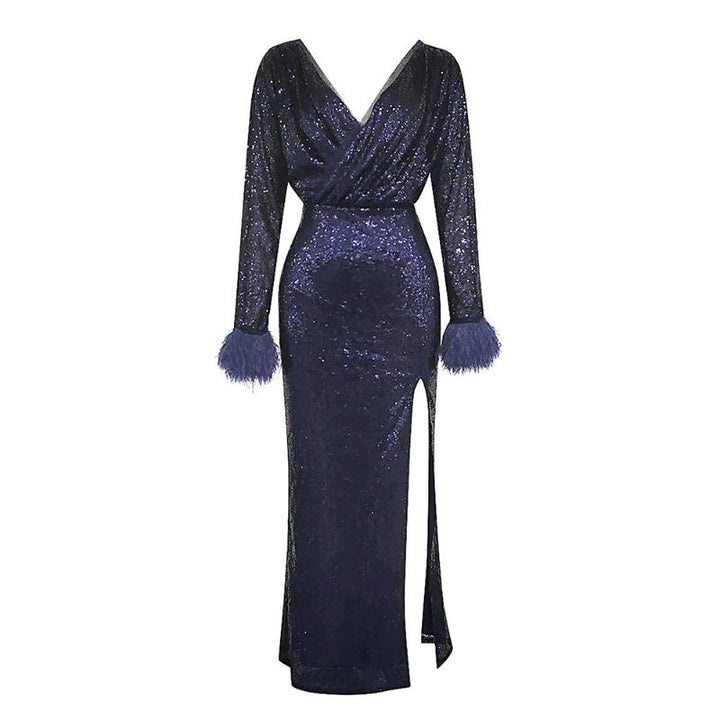 • V Neck: The deep V-neckline adds a touch of allure, making this dress perfect for evening events or a night out.