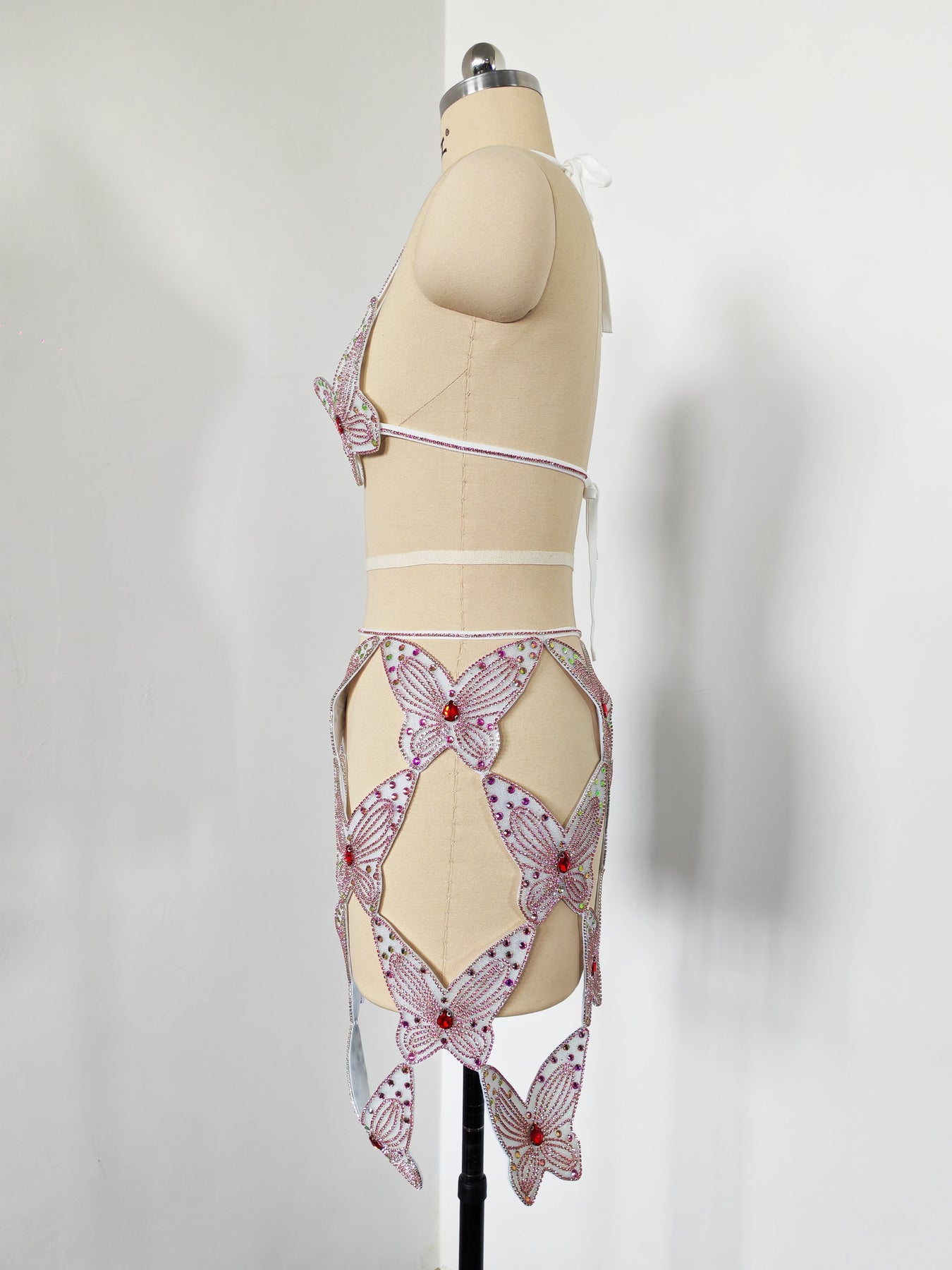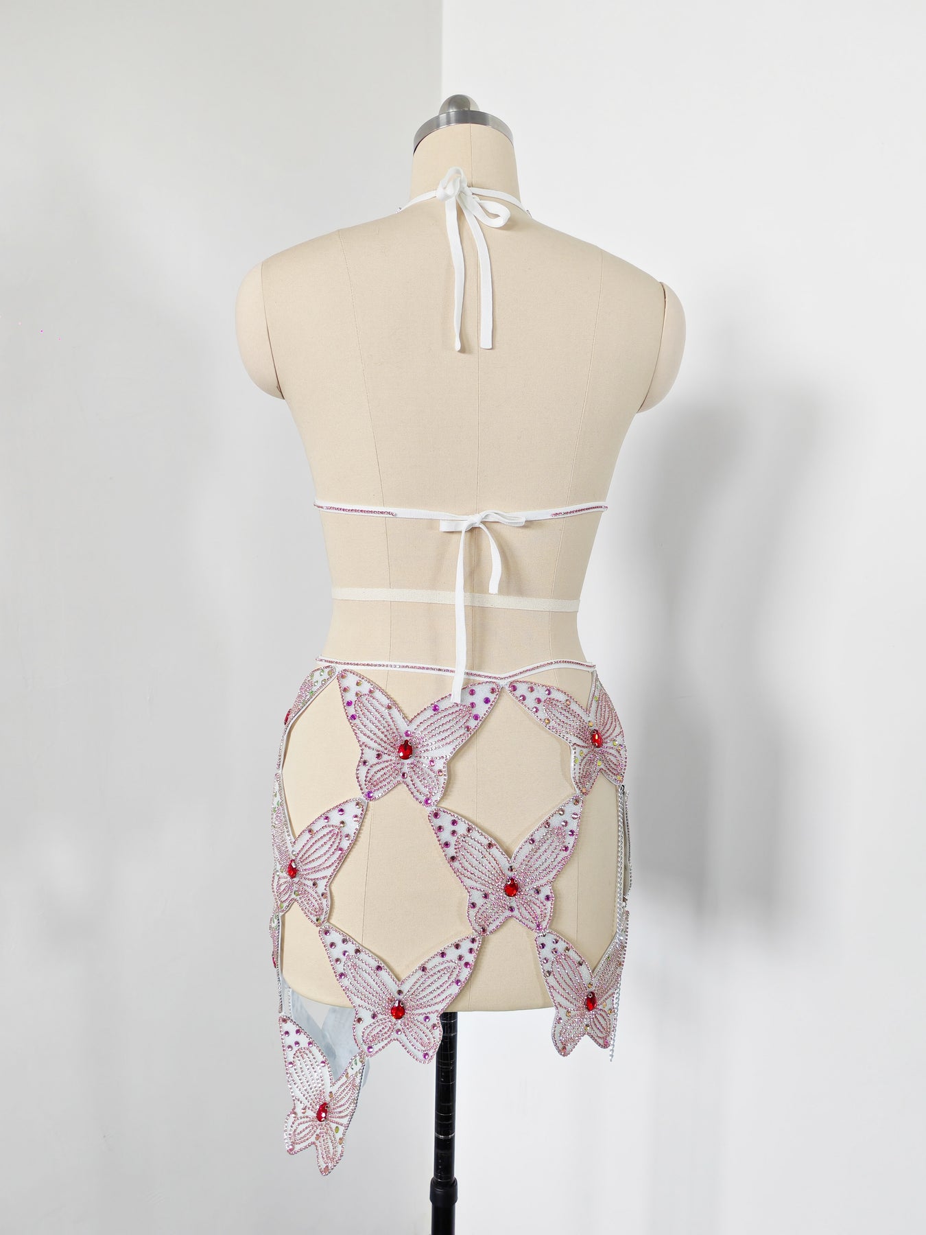 Celestial Play – Hot Fashionista Astra Triangle Butterfly Detailed Rhinestone Top with Mini Skirt