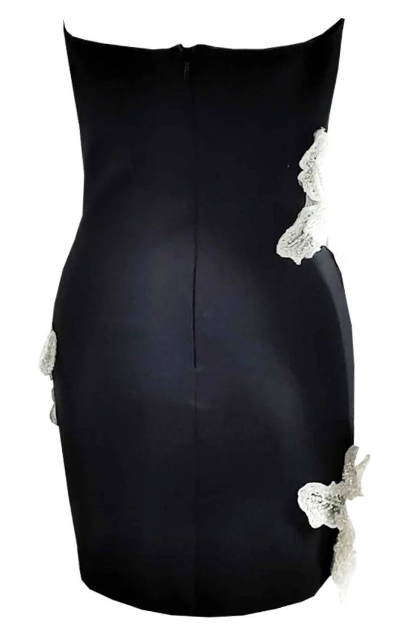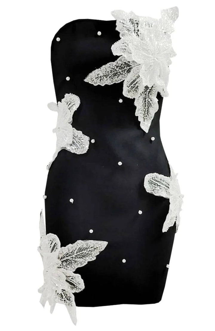 Description: The Hot Fashionista Clementine Strapless Floral Detail Mini Dress is a charming and vibrant piece that combines a strapless design with intricate floral embellishments. This mini dress is perfect for those looking to add a touch of elegance and playfulness to their wardrobe. The floral decorations and sequins create a striking visual contrast, making it a standout choice for special occasions or stylish outings.
