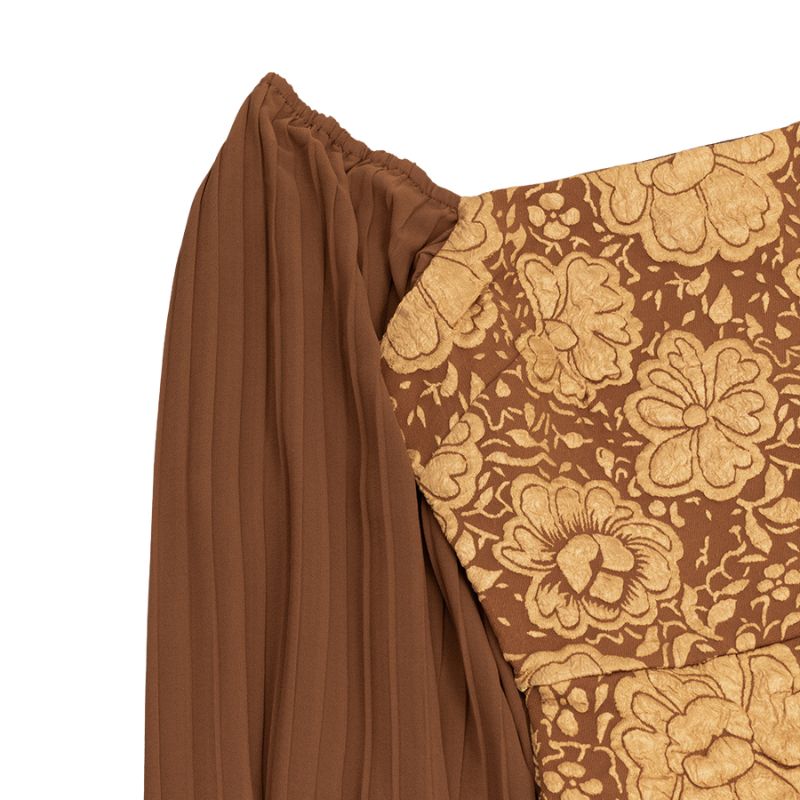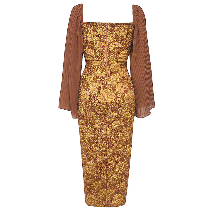 • Jacquard Detailing: The intricate jacquard pattern adds texture and visual interest, elevating the dress from simple to stunning.