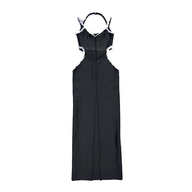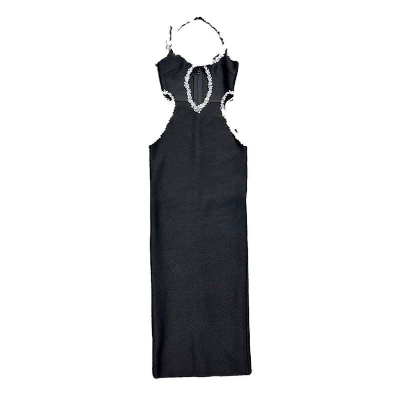 Hot Fashionista Georgina Crystal-Embellished Cut-Out Maxi Dress, an exquisite blend of elegance and glamour, perfect for making a dramatic entrance.