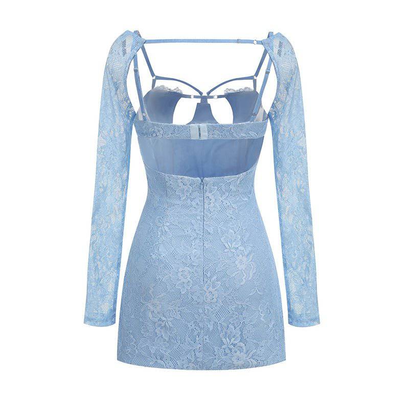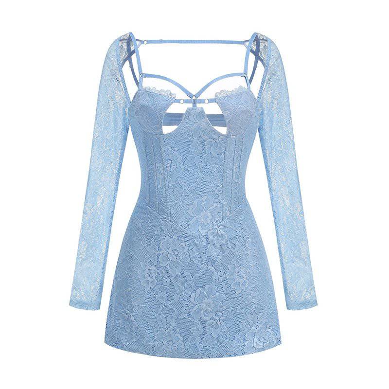 Greta Long Sleeve Strappy Lace Bustier Mini Dress