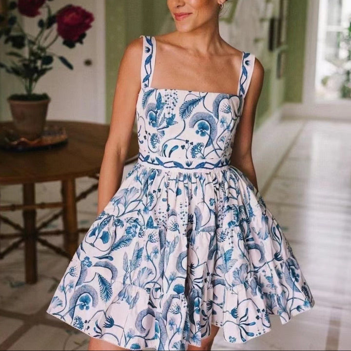 The square neck and sleeveless add a touch of sophistication, while the mini length keeps it fun and flirty. Made from lightweight, breathable fabric, it's perfect for sunny days, brunches, or a spontaneous night out.