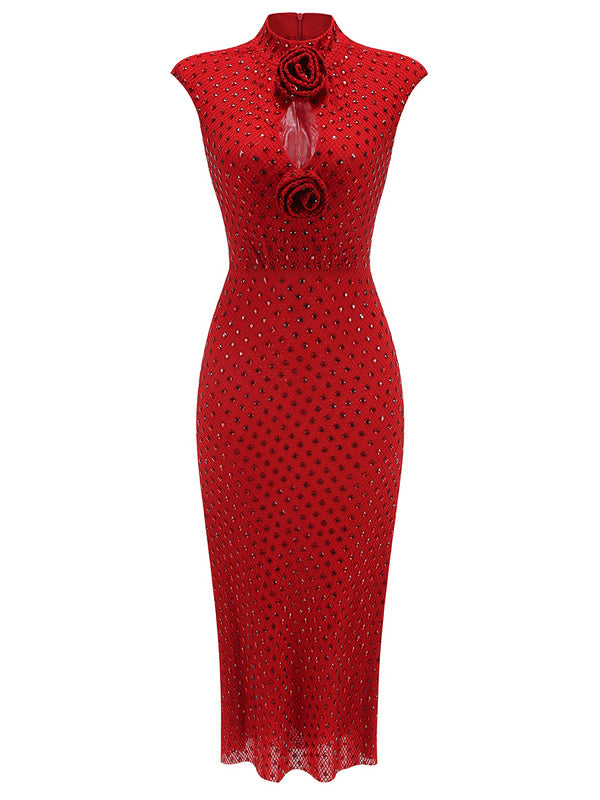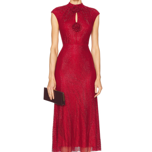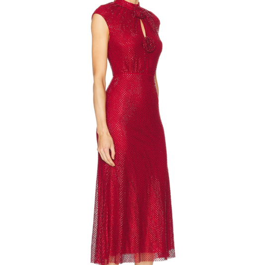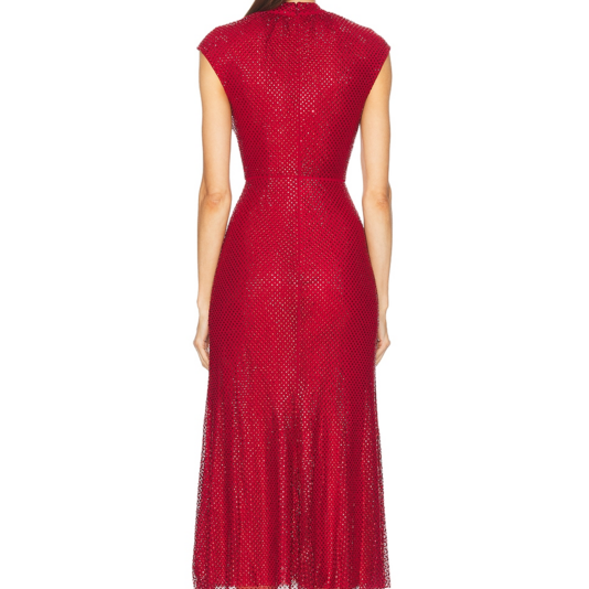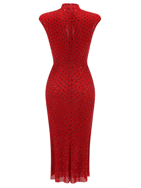 Glamour in Motion: Hot Fashionista Jolie Rhinestone Fishnet Midi Dress