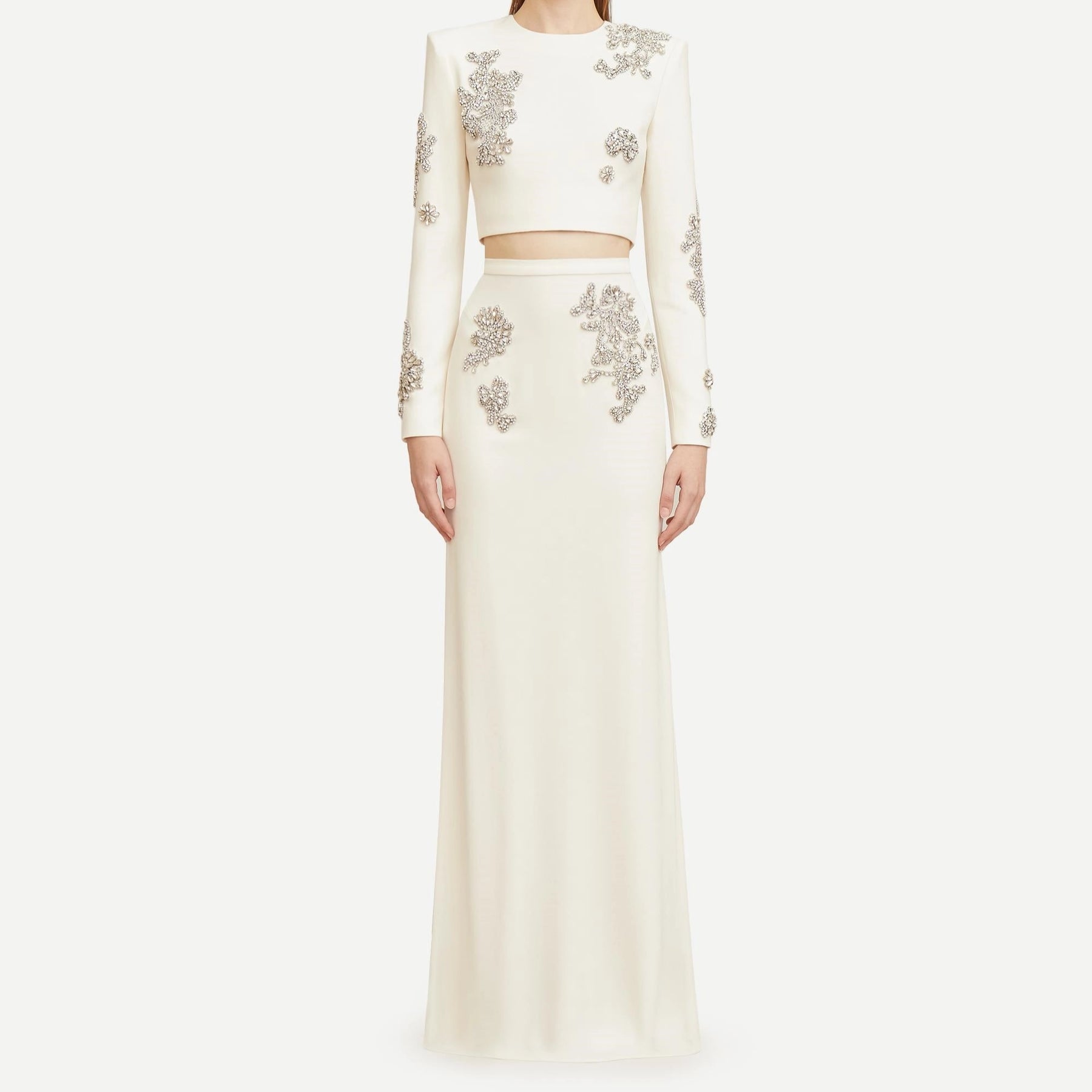 Starlit Sophistication – Hot Fashionista Juniper Long Sleeves Rhinestone Top and Maxi Skirt