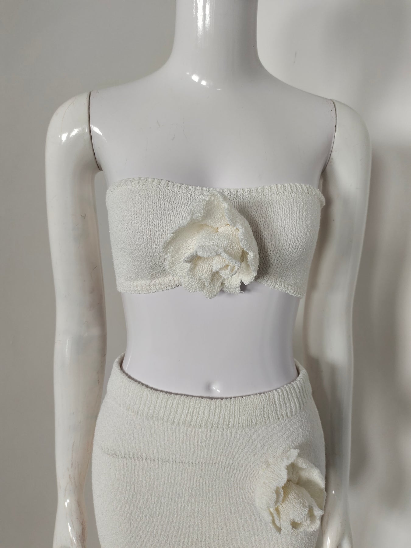 Feminine with a sculpted edge, the Kenna Floral Bustier Crop Top + Maxi Skirt set brings together romantic detailing and contemporary tailoring for a look that commands attention. The structured bustier top features floral embroidery or appliqué that adds texture and charm, while the high-waisted maxi skirt flows effortlessly, creating a balanced silhouette that’s flattering and fashion-forward. Worn together or styled separately, this set offers endless elegance with a fresh perspective.