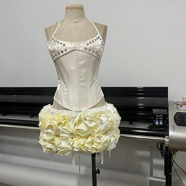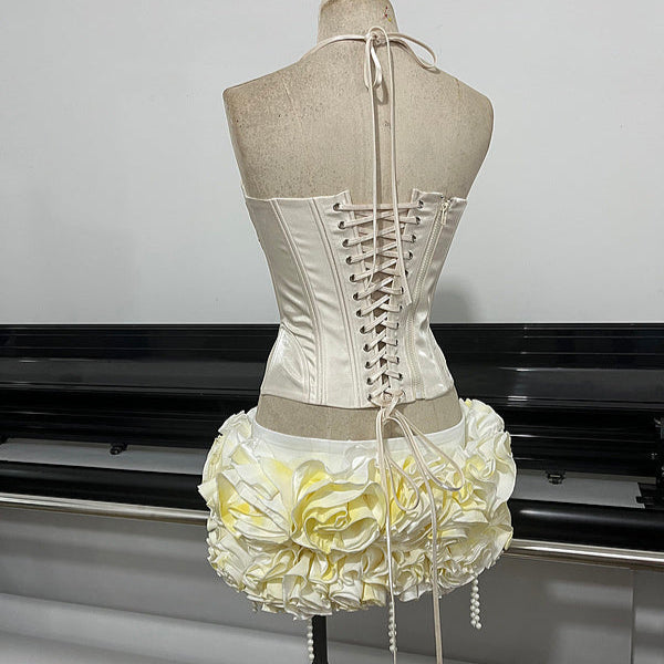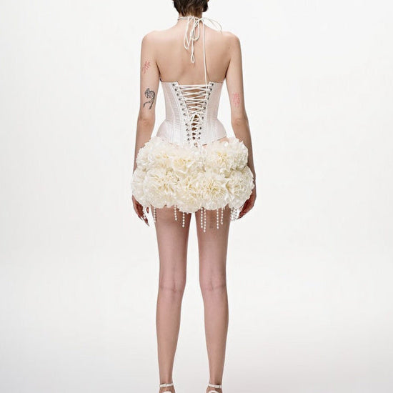Structured halter corset top with floral detailing for a sculpted, romantic look
