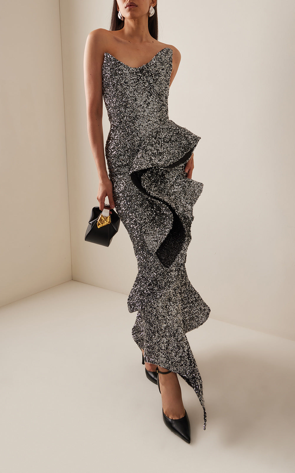 Phoenix Thistle Wave Ruffled Sequined Midi Dress - Hot fashionista