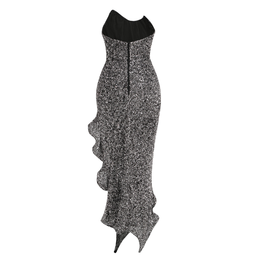 Glamour in Motion: Hot Fashionista Phoenix Thistle Wave Ruffled Sequined Midi Dress