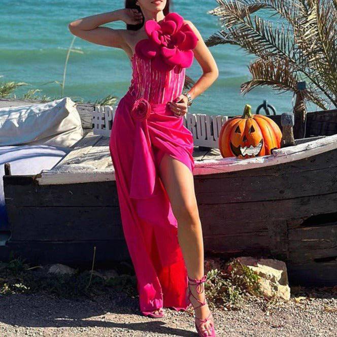 Crafted with intricate detail, the one-piece swimsuit features stunning 3D flower accents, exuding feminine elegance. Paired with the vintage-inspired cover-up skirt, adorned with coordinating floral details, this set offers versatility and style for beach or poolside occasions.