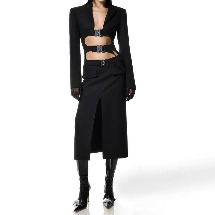 • The standout feature of the dress is the strategically placed cut-out detailing, adding a modern and edgy touch.