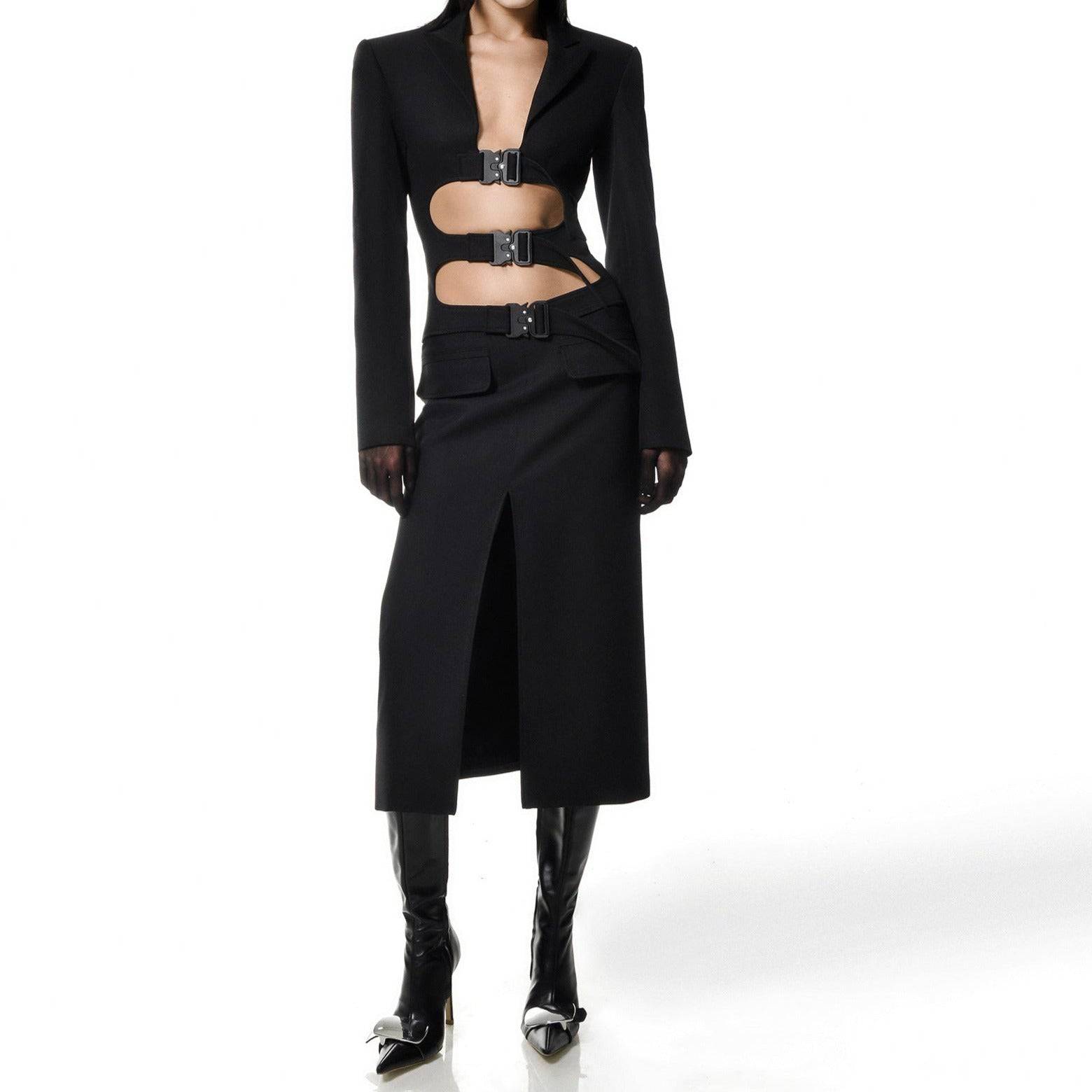 he Hot Fashionista Terry Long Sleeve Cut Out Midi Dress is a sophisticated and edgy ensemble designed for those who want to make a statement with their fashion choices. This dress seamlessly combines contemporary design elements with a touch of allure, making it an ideal choice for various stylish events and special occasions.