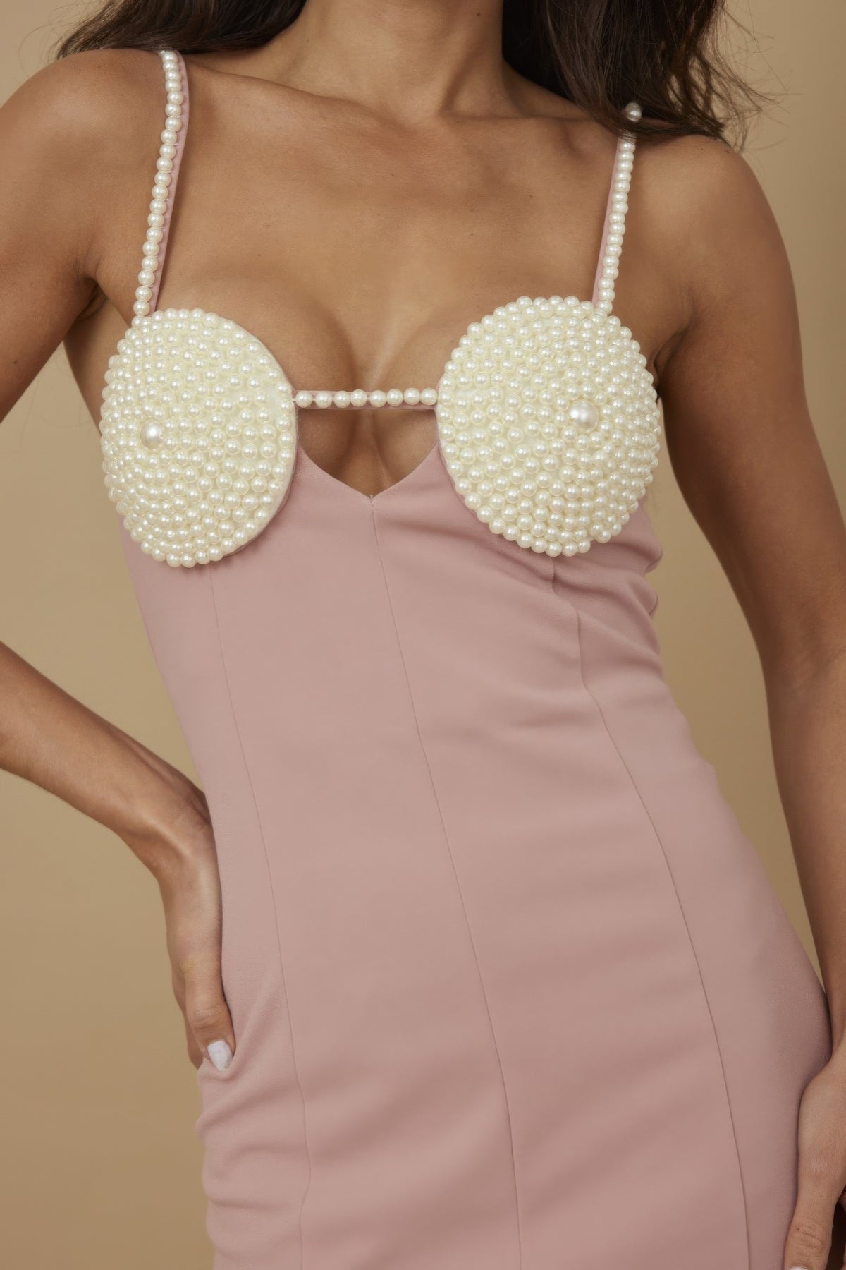 Elegant and eye-catching, this pearl patch detailed fashion dress brings a refined statement to any occasion. The sleeveless silhouette highlights the arms and shoulders, while the smooth, body-skimming fit offers a flattering shape. Delicate pearl patch embellishments add texture and a luxe finish, elevating the look with subtle sophistication. Crafted from a comfortable stretch-blend fabric, it moves effortlessly while maintaining structure. A back zipper ensures easy wear and a clean, polished appearance.