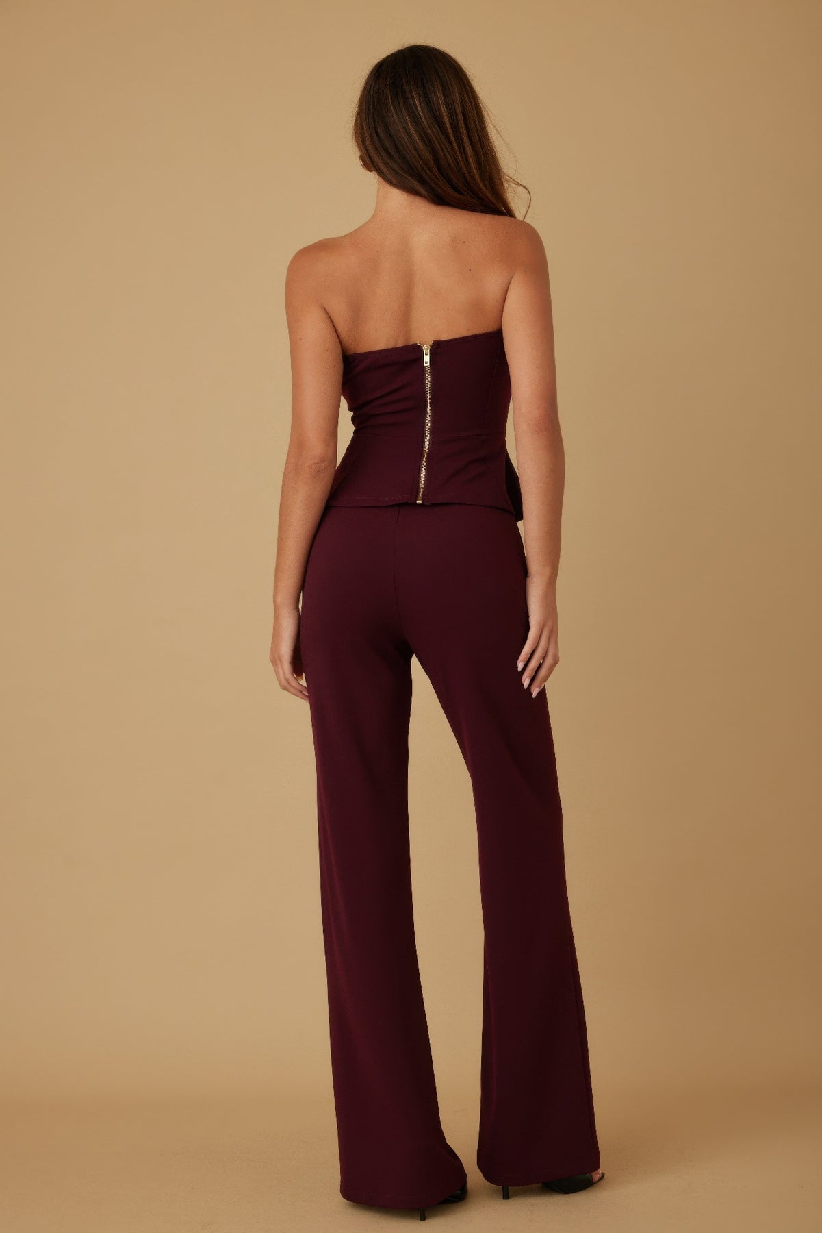 Make a bold entrance with this scrunched golden stone strapless two-piece set, designed to turn heads with its luxe texture and elevated detailing. The set features a strapless top and matching bottom, both with micro slit trim for a touch of edge and elegance. Scrunched fabric creates a flattering, body-hugging silhouette, while the side flap detail adds a statement finish. Crafted from a smooth, stretch-blend fabric, it offers comfort with a structured fit. Perfect for nights out, special occasions, or standout party looks.