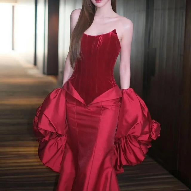 Style Tip: Keep accessories minimal and refined—opt for a sleek bun, sculptural earrings, and a clutch to let the silhouette take center stage.